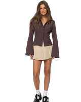 Faites sensation avec la blouse élégante Bera ! Ce haut ajusté au style rétro, agrémenté de manches évasées et pleines de charme, incarne à la fois élégance et sophistication vintage.
