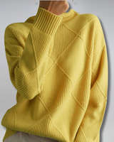 Ce pull allie une silhouette décontractée à un tricot à motif losange qui lui confère une structure et un charme subtils. Idéal pour les superpositions décontractées, c'est un vêtement polyvalent conçu pour apporter style et confort lors des journées plus fraîches.