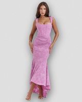 Avec sa coupe raffinée et son tissu somptueux, elle sublime votre silhouette en mettant en valeur votre taille. Imaginez-vous dans cette robe, rayonnante et confiante, prête à captiver tous les regards lors de vos soirées les plus chics.