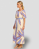 Imagine sentir la brise d’été caresser ta peau pendant que la Hélène™ accompagne chacun de tes pas avec fluidité. Sa coupe flatteuse, son tissu respirant et son imprimé feuillage aux tons frais t’offrent une allure élégante et une liberté totale de mouvement. Que ce soit pour une promenade en ville, un dîner en terrasse ou un mariage estival, cette robe te fait rayonner sans effort.