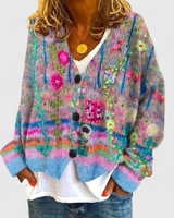 Ce cardigan allie confort douillet et personnalité éclatante. Avec son style boutonné sur le devant et son motif coloré, c'est la pièce parfaite pour égayer vos tenues de tous les jours tout en conservant une superposition simple et élégante.